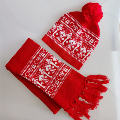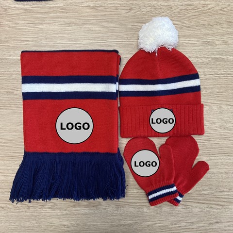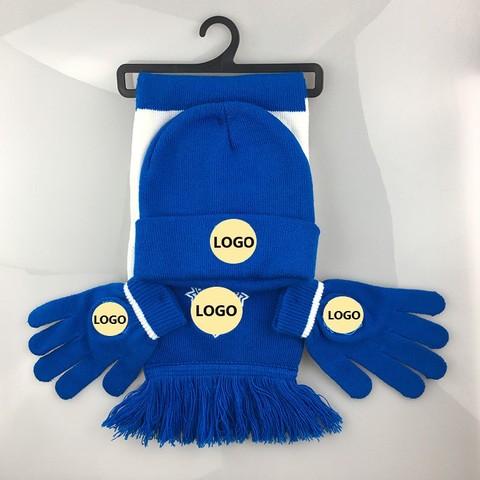 OEM Promotional Customized Acrylic Knitted Football Fan Soccer Scarf Winter Scarf Knitting Scarves Winter Hat Gloves Set